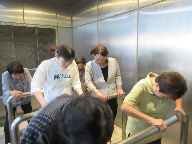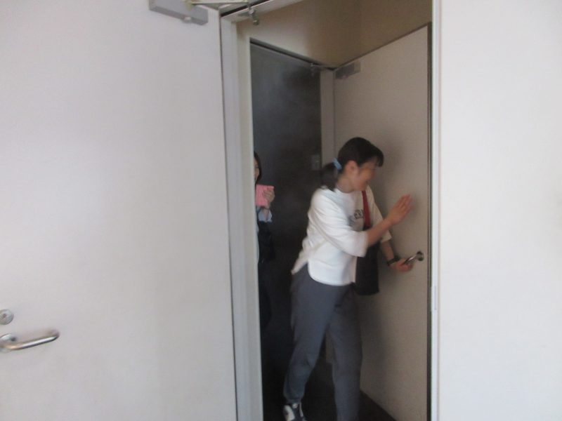 次に備蓄倉庫を見学後、四季防災館にて地震体験、煙中体験及び暴風体験を実施しました。